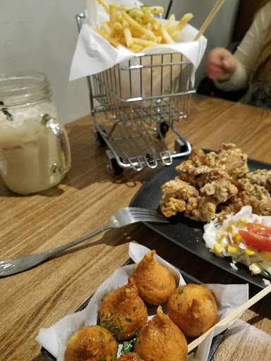 Impressed how cheap the food was despite how hipster the setting was. The boba milk tea was perfect at half sweet. The popcorn chicken at mild still has a little heat to it.