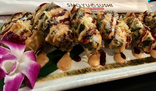 (Please note that if a picture shows different color tables other than black, its probably from another restaurant and not available from Shoyu Sushi.) Shoyu Sushi: Very friendly and clean atmosphere. This is a great place to take a date as the setting is "less colorful, more classy". It definitely does not look it from the exterior but remember, " Dont judge a book by its cover." The actual book menu is "five star" heavy quality build with logo on the front. Tables are dark but not in an attempt to hide anything. You are greeted as soon as you enter the door, whether by the host or the chefs, either way, you know that they know you are there. Our family visited on a Friday afternoon and service was great. Food has tasty. We had Rattlesnake Roll, Vegas Roll, French Kiss roll, Philadelphia Roll, Hot Night roll, Tempura Shrimp, Yaki Udon with seafood and soft drinks. Best hot roll was the Rattlesnake and cold roll was the Philadelphia. We dont like spicy food so we asked for the Rattlesnake without jalapeño. If you enjoy spicy food then order as is (with jalapeño). The kids really enjoyed their food, especially the Philadelphia Roll and the Tempura Shrimp. Kids drinks come with fashion (see pictures). Its really nice to have a great Japanese restaurant on this side of town. It has plenty of parking, next door to a church and a well established pizza place (Please note that Shoyu Sushi doesnt sell pizza dispite what other people post on this address. If the pictures show different color table other than black, its probably not available from Shoyu Sushi. Just FYI)