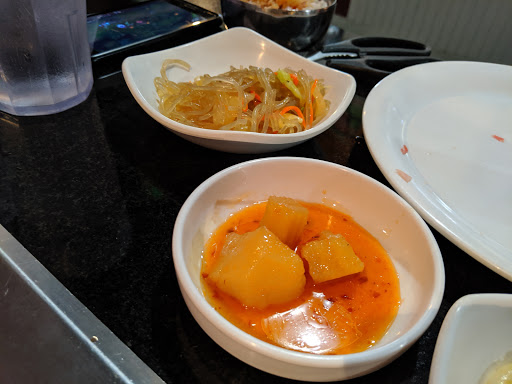The guy was really nice but the lady had a terrible attitude, terrrrrible. She was annoyed when we asked her for stuff like more banchan, she didnt even take the salad or any plates to refill when she saw they were empty. The nice dude came over and told us it was last call for meat (first time Ive encountered that) we only had 1 round and were on our 2nd of meat. Also the sign says they close at 10:30 but it was 9:40 and we already felt rushed. At the end we found a bug in the macaroni salad, all she said was sorry. My friend asked if we had to pay the full price and she hesitated then said they would take the drink charge off....22$ was way too much for our experience.