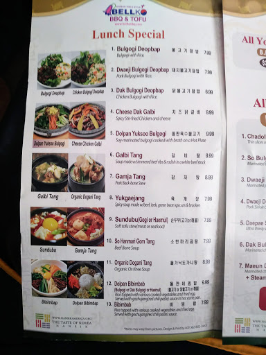 Parking: There is a small lot on the side adjacent to Bellko, but when I went on a Thursday night at 7:30 PM the small lot was already really full. Me and my friend got really lucky cause we both found street parking right across. (Make sure to read the signs!) Food: (Had the following) Chicken Salad : Flavors were good, its just cooked chicken on top of a salad with sauce/dressing. Pork Tang Soo Yook: This was crispy and delicious. It came in a nice and plentiful tangy pineapple-y tart sauce that you mix and dip the dish with. Make your own KBBQ Tacos: One of my favorite parts of dining here! I freaking love tacos, and having the opportunity to make "brisket" tacos was incredibly delicious. It comes with a side of tortillas, salsas, sour cream, and shredded cabbage. (Highly recommend if you are a taco lover!) Cajun Shrimp with Chips: This was my most favorite dish out of all the things I tried here. The cajun spice had such a delicious kick! Make sure you can handle spicy food before you order this one. It went really well with the nacho chips that they give you on the side. Service: There is a "ding-dong" service bell here (like most korean restaurants) so, just push it when you need a server and they come to you asap. The location was easy to find and also it was pretty big inside, so it would be good for groups as well.