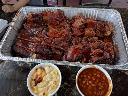 Inconspicuously located in Bellflower with a small parking lot attached, my sister and I only discovered this place thanks to LA Weeklys best bbq list. Since this is one of the few places within a twenty minute drive of my house, we decided to check it out. We came here at off peak time to avoid the crowd (around 3pm) and there were only a few people inside. The ambiance is pretty bare - a couple of small tables, some barstools and a patio with some seating in the back. But hey, Im there for the food! My sister and I ordered: -BBQ beef sandwich: I just have to say that the bbq sauce is a tadddd too sweet for my liking, so that applies both to the sandwich and the fries. However, the beef was deliciously thin-sliced and very tender. I could tell it was fresh and made to order, and the portion was very generous. I chose the mac n cheese as my side which was also good. Im not a big mac n cheese person but I did enjoy this portion. -Onion rings: well-battered and the onion did not separate from the batter - always a good sign. Definitely needed some dipping sauce though. -Brisket loaded fries: this on its own could have easily been our meal. I wish the fries were skinnier and crispier. But that is really my only complaint Gooey, cheesy, and the brisket just fell apart with a fork. Yum! Overall, I want to come back and try other items on the menu. I can definitely deal with the sweetness of the sauce, especially since the meat was so tender. If youre craving some ambiance, I suggest ordering to go and going on a picnic.