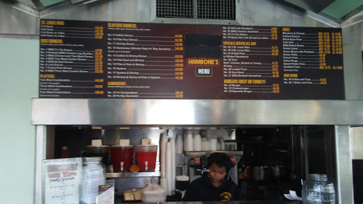 rude cashier chick in the front. didnt hand me my change sat it down on the counter, touches her hair while preparing your order. Food isnt that good, mac n cheese is never cooked all the way through. the green beans werent prepared properly. But ill tell you this. THE OTHER LOCATION HAMBONES BAR & GRILL, ON BELMONT & BELLFLOWER BLVD. WAYYYYY BETTER! nice and polite staff. The food is great and you can dine in its an actual restaurant with a bar :)