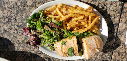 This place has a great layout and lots of seating, however the food is pricey and hit or miss, and espresso drinks are mediocre. Also dont make the mistake of sitting at the owners favorite table (it looks like all the rest in the row and is not marked). A few minutes after I sat down he came and slapped a reserved sign on the table. Every other table in the area was empty! When I asked he said it was "his" table but that I did not "need" to move. It was an awkward confrontation and then very uncomfortable knowing he was not going to sit anywhere else and instead wait until I was done and gone. There are too many other wonderful cafes with nicer ownership to come back to this place.