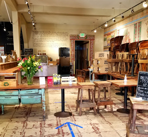I work right by this place, and have eaten there many times. But Im over it and wont be eating there anymore. A few big reasons, all of them about the whole "farming and cooking" deception: - This morning I saw them unloading about a dozen cartons of Sysco corn oil - while a sign prominently placed on their wall says "we only use olive oil". This is a big and unhealthy lie, and prompted this review. - The Sysco truck is there several times a week, delivering meat and other goods. Sysco is a national mass-market distributor. Their suppliers are industrial processors, and the meat comes from feedlots and animals who were tortured. Look it up. - The sign on the street says "we cook our own organic vegetables", yet I see the regular produce being unloaded there nearly every day. I wonder if they grow any of their vegetables. How would you ever know? I guess thats why the claim is in quotes. - They use harsh chemicals to clean the restaurant, you can smell it as you go by. Yet their wall also claims to only use natural cleaners. - With all of the above in mind, why would I go there and pay $5-6 for a taco or $10+ for a burrito? No sense in paying more for the same Sysco crap. Sure the food is flavorful, but all the deception and the cost leaves a bad taste in my mouth. I recommend you avoid, and go to a normal Mexican restaurant that makes no false claims about its suppliers.
