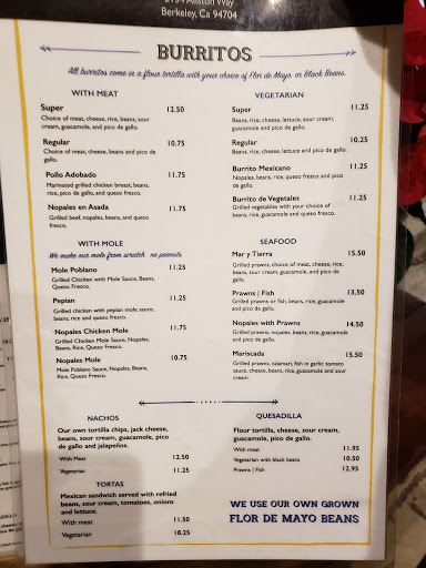 A little hard to find, but a great Mexican joint right in the middle of Berkeley. The salsa bar is amazing. Apparently they grow most of their own ingredients, which definitely adds to the taste, but adds a little to the cost.