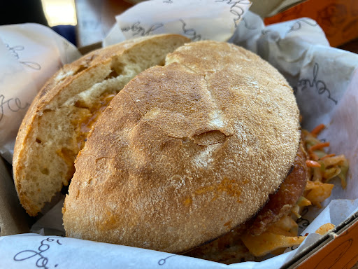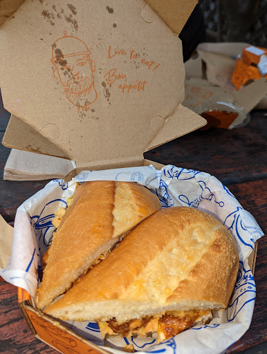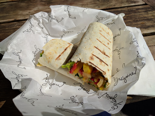 Gregoire is an adorable food stand in Berkeley. There are tables outside that you can sit at or bring your delicious food with you. Ive had a variety of sandwiches there, last time was the fried chicken sandwich with their famous potato puffs. Everything was delicious, but the one issue I always have with their sandwiches is that they over sauce everything. There was a ton of coleslaw in my sandwich and it was kind of oozing everywhere. I dont mind getting my hands dirty when Im eating, but the sauce all over the place and the soggy bun doesnt make for the perfect sandwich experience. However, if you do let them know they can go easy on it (I just forgot that day). Overall, really delicious food in the heart of Berkeley.