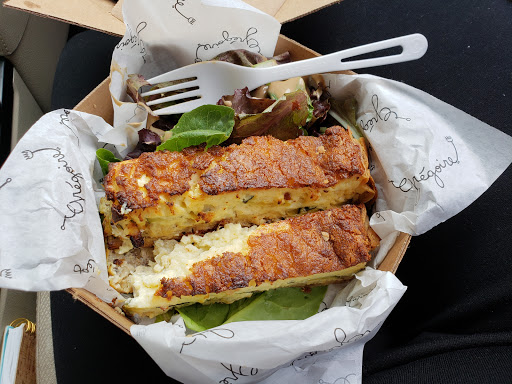 Great place for gourmet take out. I visit this place often for breakfast/lunch/brunch. Amazing food in cute little boxes. The menu changes quite often (I think monthly), allowing for seasonal elements to influence the dishes. Plenty of healthy options as well as vegetarian options. One may find the menu slightly pricey, but the food is totally worth it. The only downside of the place being, there are only two benches on the spot. So if youre planning to enjoy your meal under the warm sun, you might not get a spot. But like any other take out place, you can go somewhere else and enjoy your meal.