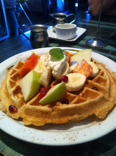 Their waffles are done perfectly, but keep in mind theyre only served in the morning (til 1pm?). Staff are friendly here, music is nice. Im a big fan of their paninis too.