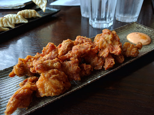 The ramen at Kaze Ramen is slightly above the level of a ramen side order you would get at a sushi restaurant, but quite a ways below the quality you would get at the specialty Ramen shops in San Mateo. The noodles are on the soft side and the broth is slightly lacking in flavor. The Black Garlic Ramen is essentially tonkotsu with sesame oil, which is not bad but not particularly exciting. A lot of the other dishes are at a similar level, with one example being the karaage, which was mostly dry batter with little chicken. Overall the food is good enough for this place to be a quick stop, but probably not a destination.