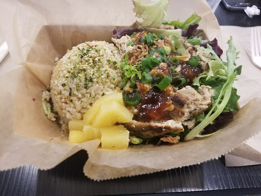 The chicken rice bowl and the loaded fries were great.