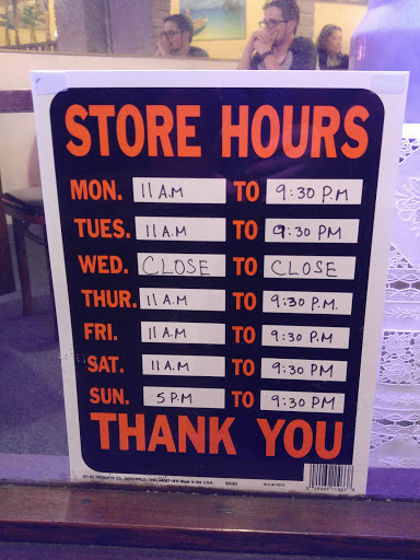 | Working: | 11AM–10PM 11AM–10PM 11AM–10PM 11AM–10PM 11AM–10PM 11AM–10PM 5–9:30PM |