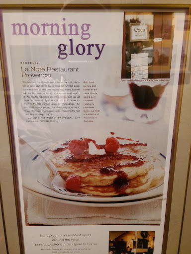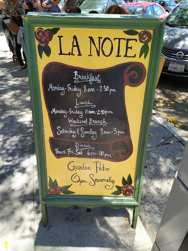 I was thoroughly disappointed with the experience my family had for brunch at La Note. My mom arrived at 10:50 am and put her name on the list. She was told that there would be a 20 minute wait. We were finally seated two hours later. My mom was ravenous and asked for some bread. We waited, and waited. No bread. Then my dad asked for bread and a few minutes later it arrived. The restaurant had apparently run out of utensils and so they informed us that they would bring us knives. They never did. I was also disheartened to notice that the "syrup" that comes with the $12 pancakes is not maple syrup. Maple syrup costs extra. The "butter" that comes with bread tastes like whipped margarine. I believe that the problem may be a structural one. Id like to suggest to the owner that they buy the right amount of silverware, and train their staff to provide more realistic wait times to people in line. In addition, it might be useful to have an additional server or maitre d on the floor.