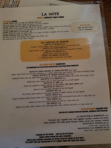 Cozy and cute brunch place with a tasty menu. Ask for the baguette and eat it with raspberry jam, you wont regret it. I came for breakfast and really enjoyed it: Brioche pain perdu - I think thats what the french toast was called. Delicious and not too sweet. I really enjoyed the cinnamon flavors I got from this. Omelette fromage et jambon - Tasty ham and cheese omelette. Comes with home fries which are chunks of potato fried with roasted garlic and herbs. You have the choice of 2 breads, but you can also request a baguette which our waitress gave us raspberry jam for. This whole dish was my favorite of my visit. Cote ouest - This was an omelette covered with ratatouille. It wasnt bad but it was underwhelming. Also came with home fries and choice of 2 breads. This restaurant is on the pricier side with our bill coming to about $70 just for eggs and french toast. I also had to wait around 30 minutes to be seated and my whole party had to be present to be seated which knocks a star off for me. I think you can make a reservation, and Ill have to try that next time I feel the need to have a fancy brunch. Oh and if you speak French, the owner does too!