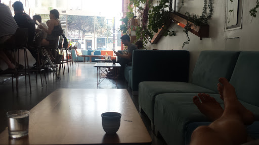 Good alternative to coffee as they serve drinks in coconut shells. They also have kombucha on tap. Some night they have a projector showing natural rainforest scenes. Parking is easy in this part of town.