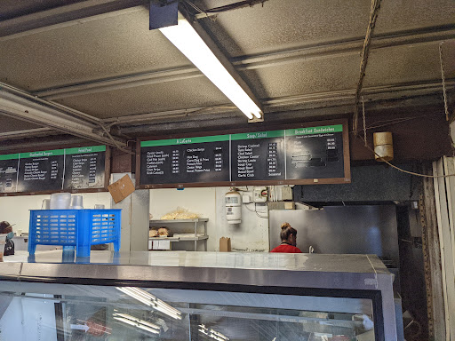 Open air place to get a quick bit and eat on outside picnic tables.