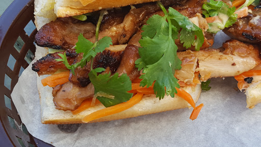 Good bahn mi sandwiches, done slightly differently than most, with a fresh grilled, then sliced piece of pork or chicken. Fries here are good. Pho is also tasty. Patio seating in warm weather.
