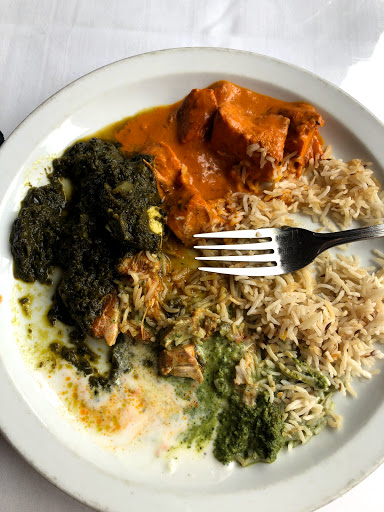 Very decent buffet lunch meal mid-week. Selection included chicken tikka massala, chaana saag, lamb curry, veggie pakoras, the usual assorted condiments and some sweet desserts and rice pudding. Also tea, and naan. All of that for $12, I ate too much. It is not spicy so if thats your craving look elsewhere, but flavors are perfectly enjoyable. The place is huge and was not even half full. Will definitely come back.