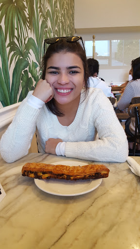 The place is super-cute with mirrors and marble tables. Went there on Monday around 10am for breakfast and the place was almost full. Liked the white decor which complimented the natural light streaming in from the full windows-a la Mediterranean! Had a latte and a pain "au choc-both" of which were good. Also bought a mini loaf of cranberry+walnut which I had for dinner w the pate bought from CuriousShoppe - both were deicious! Recommended if youre in the area! Thanks!