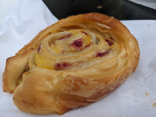 There wasnt much to select on a Sunday morning, but we found four pastries to try. The chocolate éclair was the best creation of the four with a fun pudding-like chocolate filling. The croissant had a crust like a water-washed bagel. The chocolate version didnt have much chocolate and what chocolate there was, unevenly slid to one side. What looked like a cream puff was really a custard-filled sandwich called a tarte tropezienne. The custard was packed between layers that were half bready and half cakey, but mostly unsatisfying. They also sell baguettes and coffee along with serving breakfast and sandwiches.