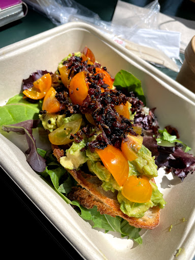 Lovely French bakery with amazing food! If Im looking to get a quick breakfast, cappuccino and croissant are great. Breakfast food options: croissant with salmon and pouched eggs or avocado spread For lunch highly recommend chicken sandwich or chicken salad.