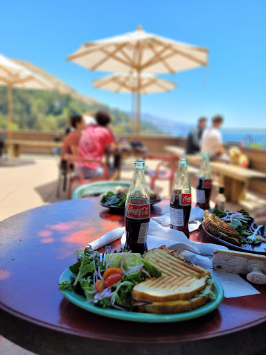 Ive been coming to Nepenthe for years but there is a looong wait to get in on a clear day. Cafe Kevah has arguably better views and you can be munching and watching the soaring condors while your Nepenthe-bound peers are fidgeting in line. The salads are good and you get free refills on your coffee. On the way out you can wander around Nepenthe (yes, those ARE the SAME folks waiting to get in) or browse the Phoenix shop downstairs. Please take care leaving the driveway so as not to put a big, embarrassing and potentially fatal dent in your road trip.