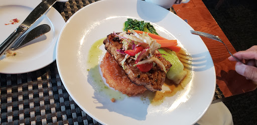 Maybe they were short staffed the Saturday night we were there. But the service was not able to keep up with demand. Simply getting to our table for the initial drink order took far too long. To their credit, the wait staff did seem to appreciate that they were struggling and offered apologies. The Bluewater is not a large room, and a wait staff of 3 seemed like it should be sufficient. But it wasnt. The cosmo suffered from too much cranberry, but the wine was good. And the wait was in any case too long. When the meal did arrive it was presentable, but I found the halibut lacking inspiration. The jerk chicken was similarly appealing to look at, and tasty enough, but still lacked serious zest. But the ambiance feels good, and the views are attractive. But thats not enough to elevate the overall rating. And thats too bad because this should be at least a 4 star place.