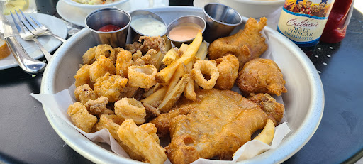 Nothing overly fancy about this seafood place on the bay. Food is palatable. Had the clam chowder, fish and chips, and Caesar salad. Chowder was good. Didnt thrill me. Salad was fresh, as were the shrimp. Fried fish was a bit oily. Service was pleasant and attentive. The interior could use an upgrade. Had an older fish shack feel. Overall its an okay place to grab a bite. Food is a bit pricey. Enjoy the view