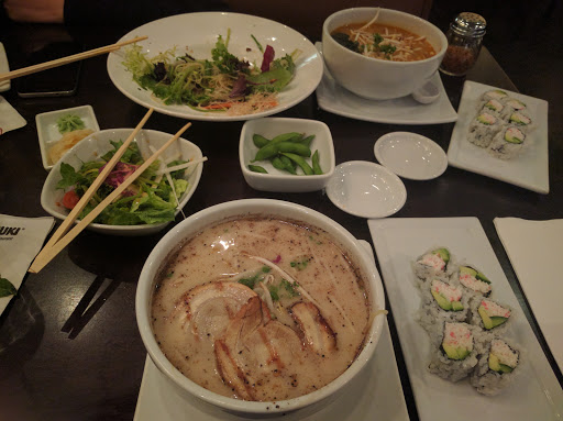 My overall experience was not terrible, but I know I wont go back. The sushi was just OK and didnt blow me away like some of the other places i have gone. The good news was the Edamame was really good and cheap and came out quick. The bad news is that our server was rude at times and missing when she wasnt being rude to us. Maybe to someone else? Who knows. Anyways.... We did spice up the night by enjoying some delicious Sake bombs, but then we were cut off without warning (and no we werent being obnoxious) and they said it was last call. I dont recall hearing a last call notice and my watch said it was 9pm... IDK? Like I said, overall, not terrible but I wont go back.