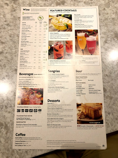 Im beginning to become more and more bitter every time I have to eat here. The menu selection is awful and everything is overpriced. You can get better food for a better price at Old Spaghetti Factory, or any other restaurant for that matter. The breadsticks are frozen and have a perferated line on each edge. Not fresh whatsoever. Salad is boring and cheap iceberg lettuce. Nothing good to say. Oh yes, I forgot the old folks home dolly chairs and dirty, falling apart menus! Ugh. Never going back to Olive garden no matter what location!