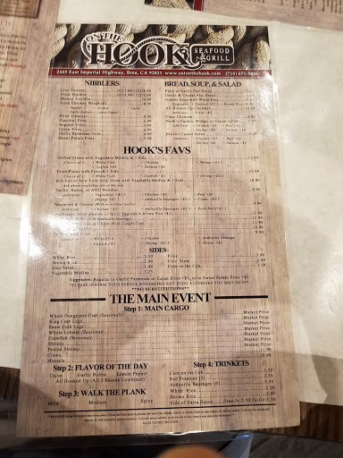 Your breath will stink but get the GARLIC NOODLES! My friend and I were searching for a place to grab a late lunch in Brea and so we decided to check out this place for some delicious Cajun food. Like Boiling Crab and other similar establishments, On the Hook serves seafood by the pound (shrimp, clams, crabs, crawfish, etc) but the the difference is they also have some really good entrees and appetizers where you dont have to get your hands dirty. Since we werent exactly starving we decided to share the following: -Garlic noodles $8.99 (you can chose veggies and chicken for +$1.50, beef, shrimp or sausage for +$2 or clams for +$3) we opted to add shrimp and sausage -Cajun fries $3.99 -Blueberry lemonade $4.25 -Draft Beer $6-$8 The portion sizes are really big so just one entree and one appetizer was already pretty filling. The garlic noodles were flavorful and I would definitely go back and order this again. The blueberry lemonade was refreshing and it had actual blueberries inside! It came in a cute mason jar and they dont skimp on the blueberries! The waitress also mentioned their awesome happy hour menu. Happy Hour M-F (5pm - 7pm) -50% off bottled beers -50% off wine -$2 off draft beers -$1 oysters The best part is they also incorporated the cool sizzling foam soap at the end of the meal so you can wash your hands and clean up without having to head to the restroom!