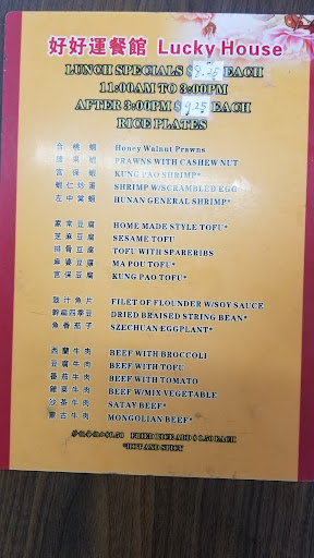 Get what you pay for: server no English or social or serving skills. Ordered swt sr pork, got chicken. Small portion. Grizzly meat. No flavor. Canned sauce. Restaurant too cold. Poor giant fish in little tank. Animal abuse. Stupid cat with waving arm. So cheap. Tea no flavor, tastes like water. Restaurant smells of cheap soap, unappetizing. Stupid radio or tv playing loud chinese channel and ads. So boring. I arrived 2:58 pm sat and asked if still lunch price she nodded yes and gave me lunch menu (with $6.50) prices. I ordered 1 $6.50 item The food sucked AND she gives check for $9 dinner price. When i question she says in barely audible words "dinner". Dumb place. Will never return