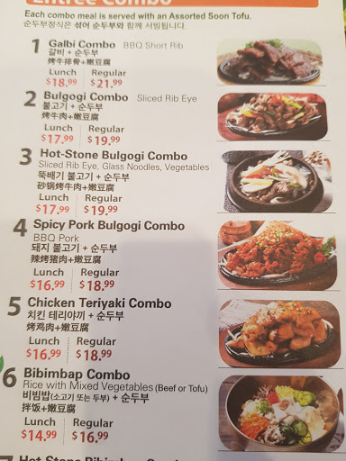 My go-to tofu place. There are lunch specials during the week - bulgogi with seafood tofu soup is my usual order. Good selection of pajun.