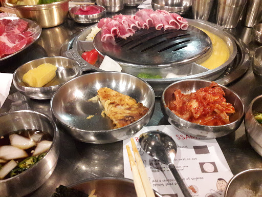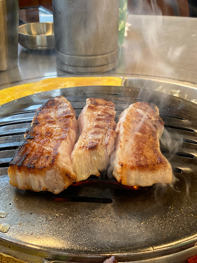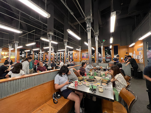 Id seen their original location in LAs ktown and their CRAZY lines so Id always steered clear, but when a friend invited me to this location and mentioned the times werent as bad, I decided to give it a go. We met up there at 8pm with a couple of more friends, and all told, we probably waited about 30 minutes or so, which isnt too bad, but we were all VERY hungry and totally ready to mow by the time we got seated. We decided to get the Beef Combo and the Pork Combo since we were so hungry, but by the meals end we ended up taking much of the pork combo home, because we were that full. They may not be AYCE, but they dont skimp on the portions! They also cook it for you and can cook it to your liking, especially for things like the rib eye. We got the bonus of having one of the managers help out our table, and he gave us some helpful hints, like if we hadnt tried their boneless short ribs (we hadnt) we should really try them. He gave us a few pieces to sample and OH MY GOD--rich, marbled goodness like Id never experienced before. My favorite beef cuts were the brisket and the boneless short rib. We were starting to get pretty full at the end of the Beef Combo, but the Pork Combo was still coming! My favorites from this combo were the spicy pork (which they cook in the kitchen and bring out) and the pork belly--so, so good. Their banchan is good too, and a little different from the traditional places. They give you cut red radish instead of the white ones, and they dont give you the little rice cake sheets. The dip for the cooked meats is a little different too, but they give you like three different kinds of salad and that was really good. The way they do the steamed egg is interesting and different also: instead of bringing it out in a little stone bowl like they do at most other places, they pour the egg mixture from a kettle into curved narrow pans placed along the edge of the grill, letting the egg cook slowly over the course of the meal. I dont know what they put in that egg mixture, but its like Korean Krack, lol. We asked for two helpings of that stuff. At the end of the meal we all agreed that 2 combos for four was a little too much--it wouldve been perfect with six people, we thought. But Im glad we got to sample as many different things as we could!