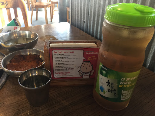 A bunch of usmet up over the weekend at the Buena Park location of Kang Hodong Baekjeong KBBQ for a post Thanksgiving meal. I have been to the KTown location before so I knew what I was in for. Kang Hodong is one of the best places to KBBQ in SoCal. Chris C. organized the whole thing and we were settled in the back of the restaurant with 2 tables and 4 grills. We arrived before the busy fray of dinnertime customers but were still met with excellent service. We ordered the large beef but received some cuts that were off menu as well. Let me just say that do not come here for AYCE. You wont find it. Everything here is purchased a la carte. They have combinations that are well worth the money and so are the cuts of meat. Its quality over quantity and youll definitely find it here. They have two different types of grill plates along with charcoal in with the gas burner to give the meat a chargrilled aroma. Everything was delicious. We had brisket, boneless short rib, marinated beef, and a few sides brought out. The japchae was steaming hot from the kitchen and oh-so-good. We even tried the beef tatare with Asian pear. That was the best! It was tender and delicious with the pear. I would not have thought to eat it that way but Im a believer now. Our servers were fantastic. Kudos to Isaac and our other servers who I did not catch the names of. The meal was pretty gut-busting but well worth it. I still think the cheesy egg and cheesy corn are weird additions to KBBQ but it makes people happy. Thanks for showing us a good time.
