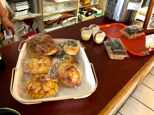 Occasionally I get various pastries here (Mochi/Red Bean pastry, green onion bread, taro bread etc) and their prices are very reasonable since theres no other Chinese bakery in the area unless you go to Cerritos. Recently I ordered a cake for my cousins birthday, and was able to easily place an order over the phone on July 4th, with a pickup time of 2 hours later. Not sure if it was just for the holidays or its their usual policy, but they said they only make the cake when an order is put in. So call ahead of time to check if you were thinking about wandering in and seeing what cakes they have on display. I ordered the 8 inch square **Blueberry Mouse** for $34 and it was beautifully presented in a cake box! The ribbon closure made it so you dont have to deal with cutting tape and it was a very elegant way to carry it. Looked almost like a cute hat box! The cake itself was very pretty too with fresh fruit on top, and layers of blueberry mouse in between cake layers. It wasnt too sweet either as their cakes tend to cater towards Asian tastes. The owner/manager also said they use egg whites instead of egg yolk so the cakes are very low in cholesterol! Bonus! Everyone liked the cake a lot so Ill make it a point to try some of their other cakes too. The 8 inch square fed around 11-13 people depending on how big you cut the slices. Yum!
