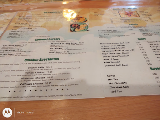 Honestly, everything was great! The server was attentive and friendly even though it was slightly busy. The food was really good, too! And the place was clean and even with the busyness, it wasnt loud. There is free wifi and restrooms available. I ordered the corn beef and hash with potatoes, OE eggs and wheat bread. Soo full! And it was quite scrumptious. My dad had the popeye omelette and my bro had a breakfast burrito. They both said they enjoyed their too. Best part is the kids meal was amazing size for their really good price! You dont find that often. Been here for lunch before, came now for breakfast, totally would come back again!
