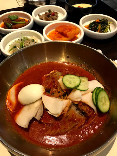 Your credit card will not be working in here and you will be blamed. No respect. Price is the top in this area. I ordered Korean cold noodle and the noodle was rarely cooked. Quality? Not recommandable anyone.