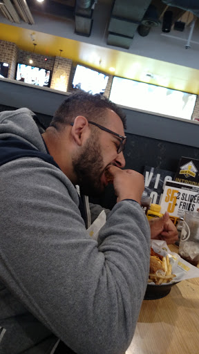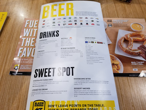 Absolute terrible service and food quality. Not to mention the extreme wait time, not get a table but, to have any service at your table. Shouldnt have to wait an hour just to get your first drink then another hour plus to get your food when you put both orders in at the same time. Not to mention getting your appetizers after your main course. And of course not getting dressing or silverware with your late salad. You would think having a party of 10 would be a priority. After having to wait another 45 min for our check, we asked for the manager who said he would comp us another round of beers.(still on the first round after almost 3 hours, but not on the lack of asking for another) We never received the promised drinks, then like clockwork they had messed up on the checks and had to try and fix them another 2 more times. Ive been to other Buffalo Wild Wings before and though the quality isnt too high, Ive never had an issue like this. Let alone a staff and manager (Steven) as beligerant as I had seen on this occasion. It felt like they didnt even wanna deal with us, just wanted to push us out the door. Our server walked away from us twice mid conversation. The whole staff looked confused and had to constantly figure out between themselves what they were doing. Never have I been told that they were just really busy when we were sitting in a whole section by ourselves lol. Simply do yourself a favor, save the headache and just dont go here. Not worth the time, money, or stress
