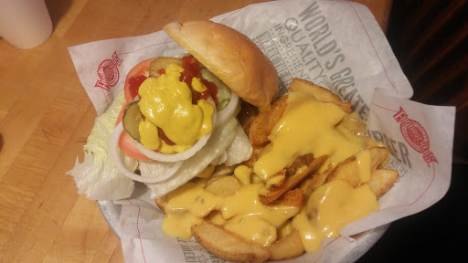 There was not a single table that was clean. NOO EXAGGERATION!! By the time i asked about specials or deals and ordered still no clean tables. I asked for some help getting a clean table which helped moved things along quicker. The soda was flat, and the manager was too busy to help the waitstaff catch up. Hmmm.. the burgers were not as expected tasting dry and and fries and onion rings were cold. The tables by the time we were done... still being cleaned... To sum up not the best fudruckers to go to.