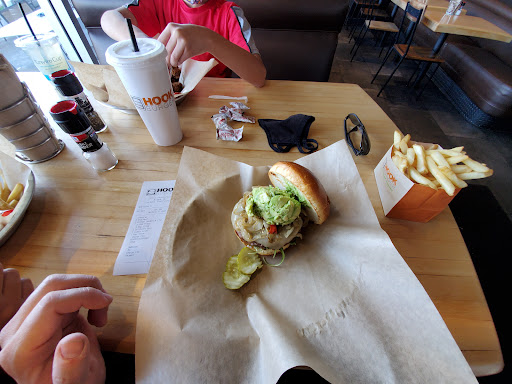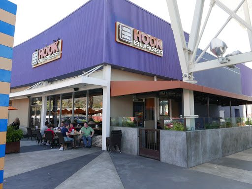 Really enjoy Hook Burger. More upscale than your typical fast-food burger joint, but not over-priced. Appreciate the addition of grilled chicken and fish sandwiches, as well as a few salad options. Nice pet-friendly outdoor seating areas, and servers always offer to bring water out for the dogs. BUT, be warned, the outdoor seating near the grass is subject to the giant seed pods from the adjacent Sego palms. Sego palm is EXTREMELY toxic to animals. I didnt realize there were seed pods (which look like tiny little pickles) scattered around our table until I wondered what my dog was suddenly chewing on! Thankfully, I caught it in time and he suffered to ill-effects. Had he actually eaten one or more of the pods, I wouldve been seeing veterinary care.