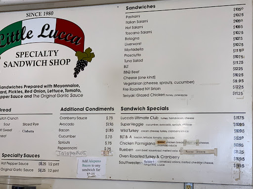 Skimp? whats that? This place doesnt know how to skimp out on the ingredients. I told them a regular tuna sub and they gave me a sandwich in which i thought was supposed to be for my whole family. Seriously they gave me something that would last me 2-3 days. The best part is their special pesto sauce they put on the sandwich, a spicy yet it tastes like gourmet pesto. Honestly you should go there before lunch time or you will find yourself back in the school cafeteria line. All in all there is nothing little about the sandwiches but big lucca sounds like a gym where buff people go to, so that makes sense. But the only con is that all the workers make the sandwich differently so some will make it really great and some will make it average.