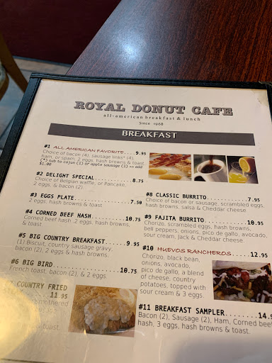 Great food, friendly staff, decent breakfast prices for San Francisco (Broadway Grill...weekends...if you want to spend $15/person for bottomless mimosas until 2pm +$ for entrees/person *$30-$40/person avg). Back to Royal Donut, I always get the chicken friend steak. Corned beef is good. My other half says: ask for the Asian food items not listed on the menu, and they have the best apple fritters. Tip: for those who dont want toast you can substitute for white rice. They have fried rice too, not sure if its extra.