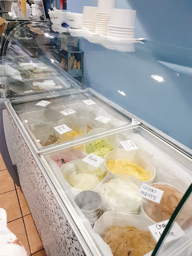 Small place with coffee in paper cups and cold croissants. You should probably keep walking.