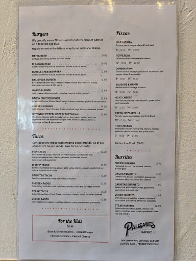 Everything about this Deli is amazing from the sandwhiches, soups and salads. Can be a little pricey but this the quality is high. Clean environment and welcoming friendly staff. If in Calistoga it is in the Train row. Love love love Palisades Deli!