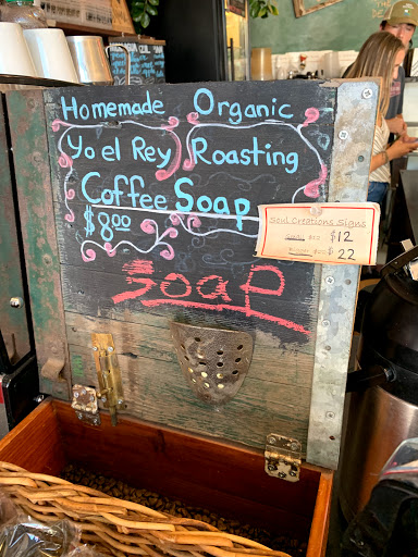 good fair trade organic coffee and good service at a reasonable price for a resort town location; front sidewalk seating while the coffee roaster operates.