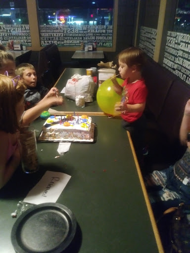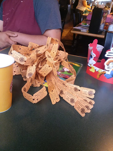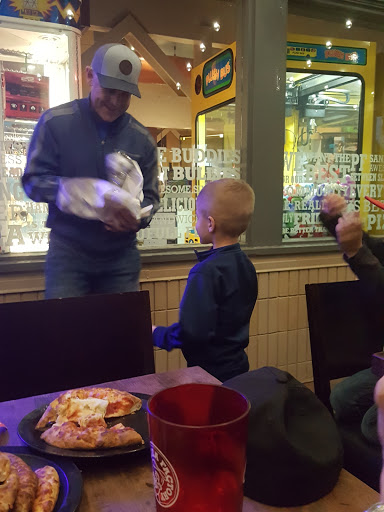 Yummy pizza and salad bar! Kids love the arcade and prizes. The meeting room is perfect for my book group to get together every month.