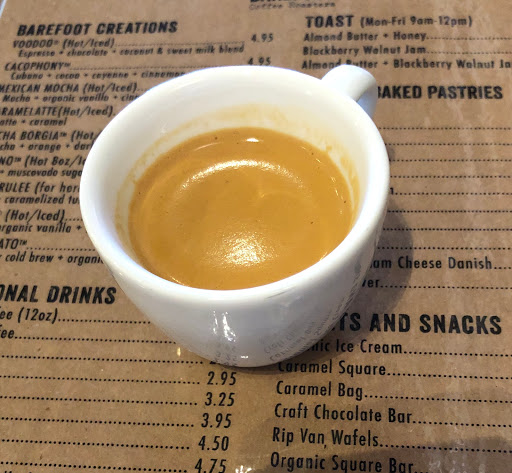 Barefoot Coffee is great! Did not disappoint. It is definitely one of the best coffee spots in the South Bay, but it doesnt quite measure up to the coffee up in San Francisco (I swear by Blue Bottle). I do like that they offer milk alternatives with Almond and Soy milk. Somewhat pricey for coffee, despite it being more artisanal.