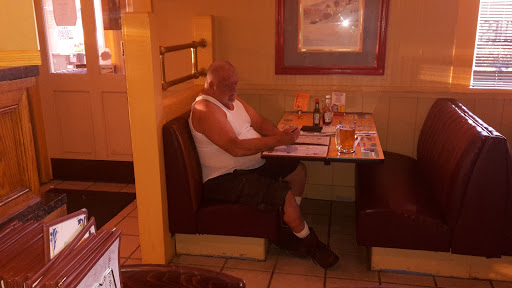 A fair place to come. Prices are fair I did notice theres no breakfast served at night. Depending on the size of salad, a bit overpriced for salad. Some things are not available like cottage cheese, I wonder what else is missing, lol. Other than that the place is fairly cared for, needs paint floors are dirty and no customers. Oh salads not fresh tasted like rubber. The wait staff were nice personable. The menu was hard to read with details printed in yellow hard to read. My partner is legally blind so I had to read the menu when she can read larger print.
