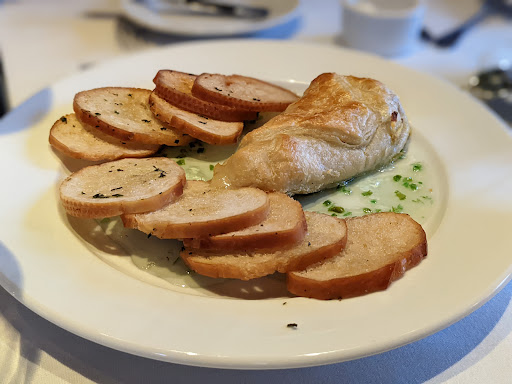 The trouble started at the front. Two ladies where standing behind the counter, one on the phone and one just standing. Neigher acknowledge us. After about 3 minutes of the lady talking on the phone she hung up. When the other lady went to seat us, the fellow diner by our table was so large there was no way my husband and I had room to set. Instead of the hostess realizing this, we had to ask her for another table by the window. She told us she had to call to get another table, so we were left standing in the middle of the room while she called. She came back and tried to set us at a table in the middle of the room, told her we had asked for a table by the window. Said she had to call again, and again we were left standing in the middle of the room. After being seated, we asked for the Duck that was on the the internet, and were told they did not have it. I stated we had just checked the interenet and it was updated that day, the waiter said they had ran out over the week-end and the person updating the internet had been ill that day! Ordered the prime rib, the meat was fatty and the au jus was tasteless, the creamed spinach was floating in the au jus the meat just got worse. The meal and service just got worse. If they want business, the service and food that night is not the way to get our recommendation. Expensive and a disappointment.