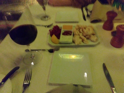 Decided to celebrate our 10 year wedding anniversary here with our kids. There was a group of 7 of us. We had a reservation for 6:30, we were sat early. The location of our table was nice. Took a few minutes to get a menu but I think they try to time it with other people who sat down around the same time. Our drinks came quick. Took a while to place our order. Food came in a timely manner after ordered. As for our meals. 2 Chicken Fried Pork Chops, 1 Prime Rib split, 1 Herb Roasted Chicken, 1 kids Fish and Chips and 1 bowl of New England Clam Chowder and a side of Calamari. 1 Long Island Ice Tea, 1 Strawberry Smoothie and sodas. I asked that 1 of the Chicken Fried Pork Chops not have the fruity chutney on top but they both came with it. It was too sweet for my husband but he wouldnt let me send it back. The meat was tough to cut as he and my older son both looked like they were chopping trees instead of meat. It was very fatty, so after cutting all the fat away my hubby ate less than half. My son on the other hand is an 18 years old garbage disposal who just wants to eat so he devoured his. He said it was good but he wouldnt order it again. For $27 the meat should be leaner and not tough. The Prime rib my daughter and I ordered was good. Cooked perfectly medium. A bit more fat than we are use to. The Garlic Mashed Potatoes and Creamy Spinach were really good. The Herb Roasted Chicken seemed to be a hit. Everyone who tried it said it was good and worth $24. Our youngest order the Clam Chowder, she is an eater and only ate half. I tasted it, we definitely have had way better else where. Our other son ordered the kids Fish and Chips, he seemed to be the happiest with his meal. The Calamari appetizer was yummy. The Long Island was really good but small for $9. Daughters drank the smoothie so fast, and said it was really good. The service was good, the restaurant is beautiful. We had a photographer friend come take family photos for us before dinner. We had lots of options for nice photos. The trolley up and down to the restaurant is cute and a life saver for those in heals or who cant do the steps. Lots of steps but a beautiful walk. I would go back. My husband would not. Our bill was $173. Kids said maybe. P.S. the worst part of the experience was there isnt a smoking restriction by the front door and of course there was a rude lady smoking the whole time we waited to be seated and not much room to stand inside without bring in the way.